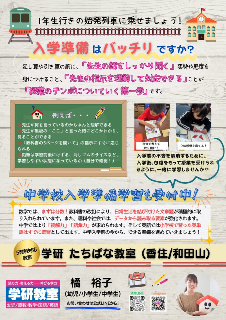 ご家庭で少しずつ取り入れるだけでも、入学後の安心感はぐっと違います。